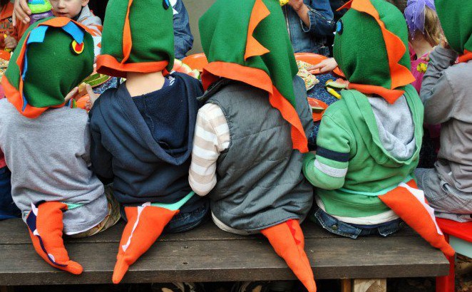 On the day of the big dig, our little archaeologists tumbled up the driveway past the large sandpit (hiding our secret fossil), carrying assorted spades and looking around eagerly for dinosaurs. A path of red tyrannasaurus footprints painted up the street led the dino diggers to our back door, where they happily donned themselves in an assortment of home-made dinosaur outfits (yes, I really went to town with this party).
